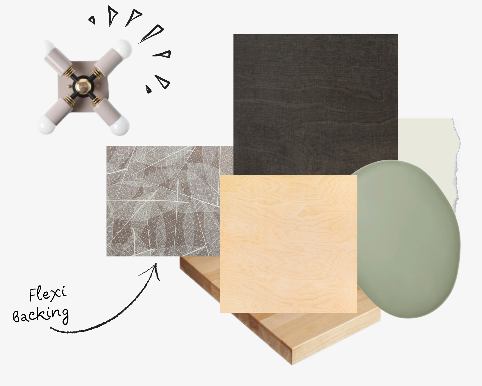 The whole mood board started with a light fixture. I was browsing around one day, saw the fixtures from Illuminate Vintage, and knew that was the key part of a future laundry room makeover. I also had gotten some samples from CaraGreen and loved the idea of including some more eco-friendly materials in this makeover. Finally, I totally thought I was going to paint the laundry room a moody green. That part of the plan didn’t stick.