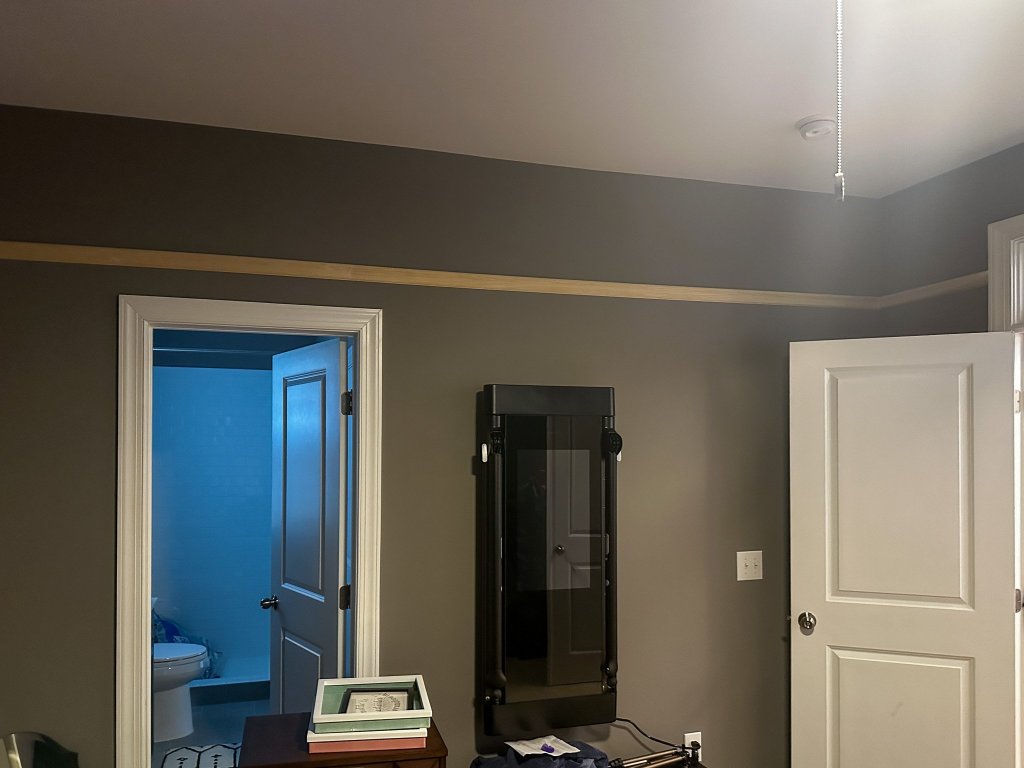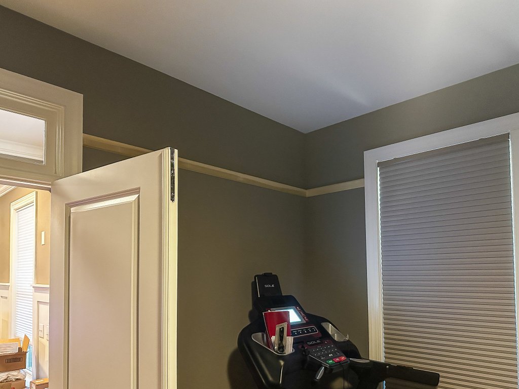 I am so glad to have found a great contractor to work with, and he and his team were a huge help getting this next stage of the room done. They installed the picture rail molding with really nice scarf joints where pieces met, and everything was caulked and ready for paint the next day. They also did a great job with the painting, even with our major hiccup with the first round of paint.