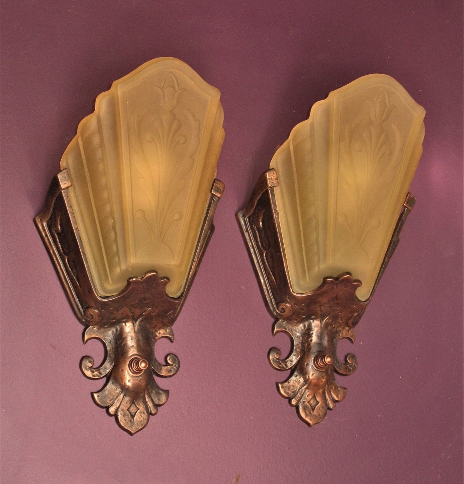 Then, after a ton of searching, I found these beautiful slip shade lights from the 1930s. After confirming with the seller, AntiqueLighting, that they were rewired to UL standards, I bought two pairs right away. I was so glad when these arrived safe and sound, again packed very securely. It was very cool to see antique lights that could be given new life with modern wiring, and I feel like this bathroom is not the only place I’ll be using vintage and antique light fixtures.