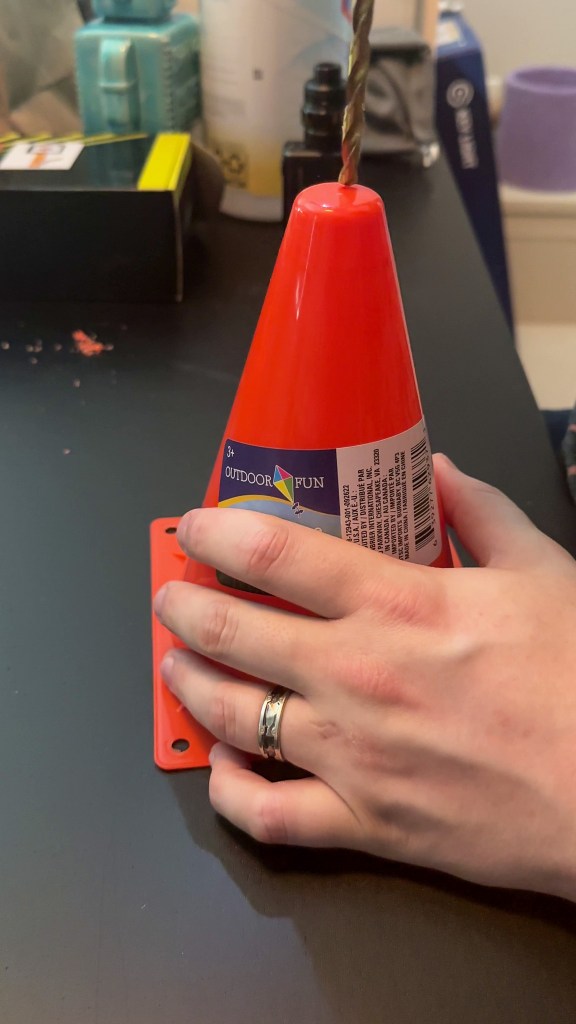 - You’ll need to drill two holes, one to each side of the center of the top of the cone.